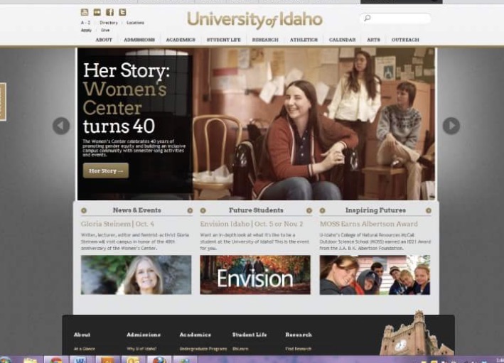 In 2012, during my time as director of the UIWC, I had the honor of leading the celebration of the center’s 40th anniversary. The year-long series of events featured a talk at the UI Kibbie Dome (!) by Gloria Steinem, a fundraising Gala, and a series of impactful workshops and other recognitions. This screenshot is the UI’s MAIN website during that celebration.