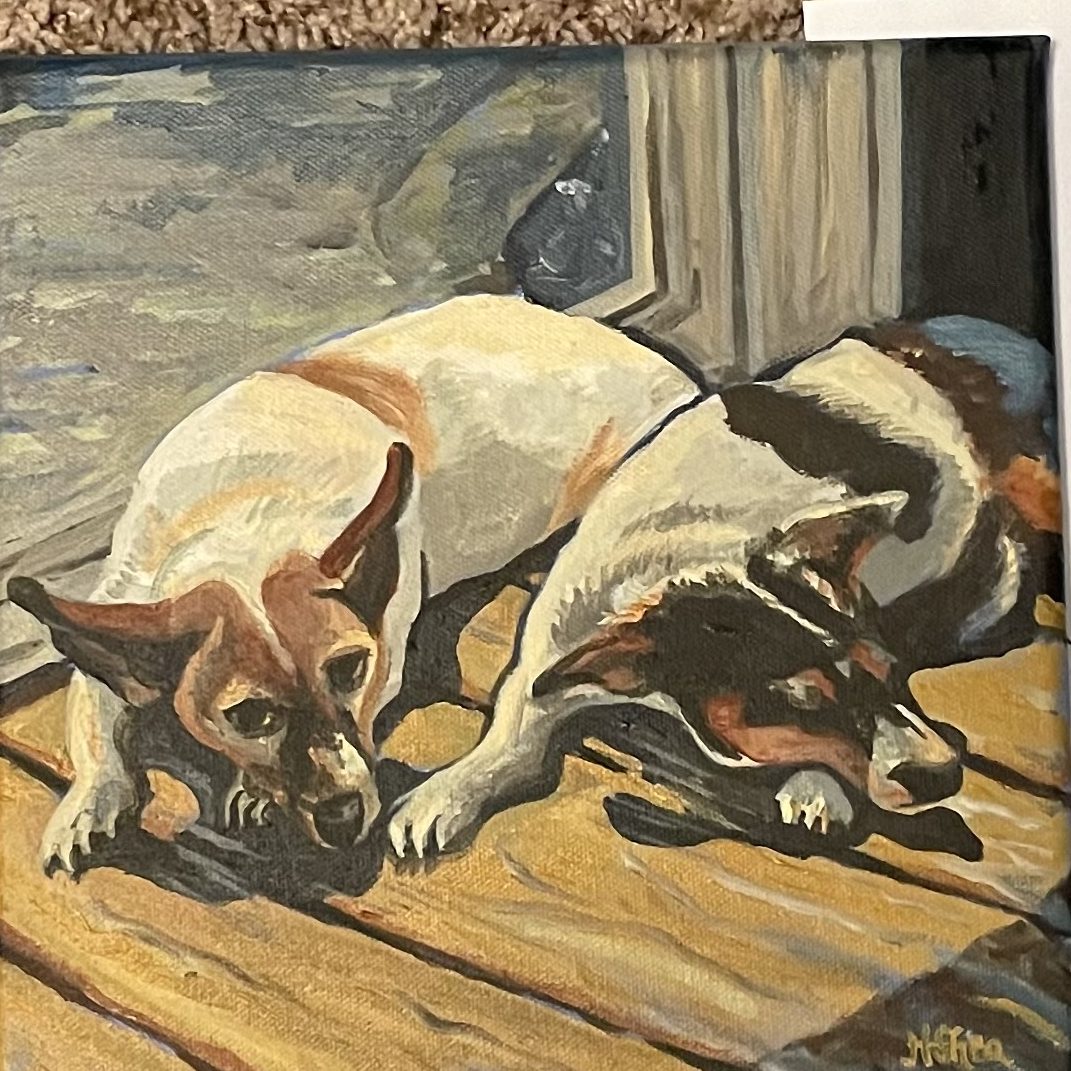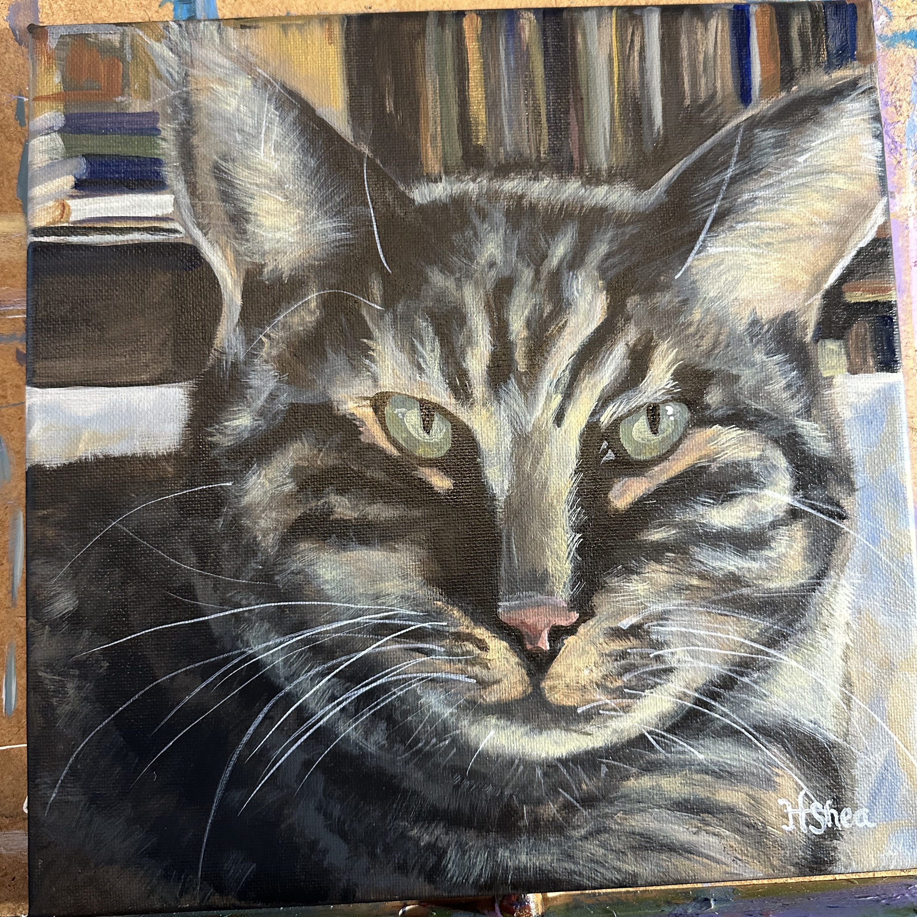 I truly love painting portraits of my friends’ beloved pets. Should you be interested in commissioning a painting, please email me at heathershea74 at gmail dot com.